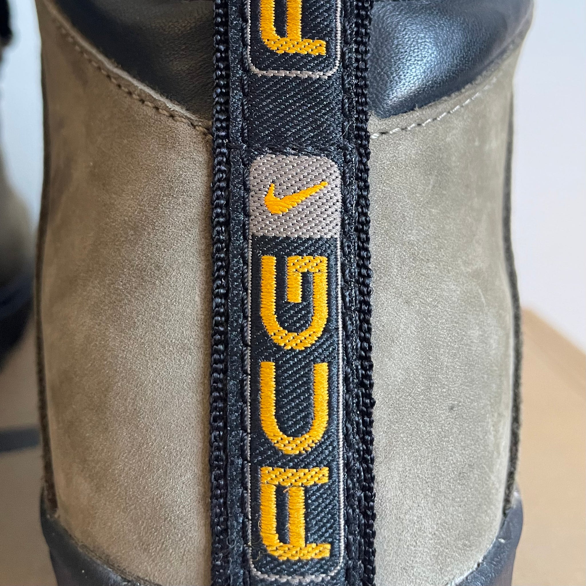The Nike ACG Gimli is a rugged high-top hiking boot that embodies the earthy design language of 1990s ACG. Its suede upper is intentionally minimal, with clean paneling and restrained stitching that highlight the material’s natural texture, while a small jewel-like Swoosh adds a subtle hit of color on the lateral side. Sturdy rope laces run through metal eyelets, paired with a leather gusset and padded leather collar for durability and support.