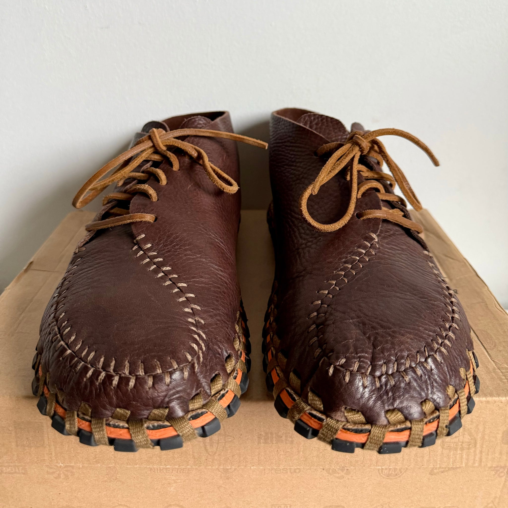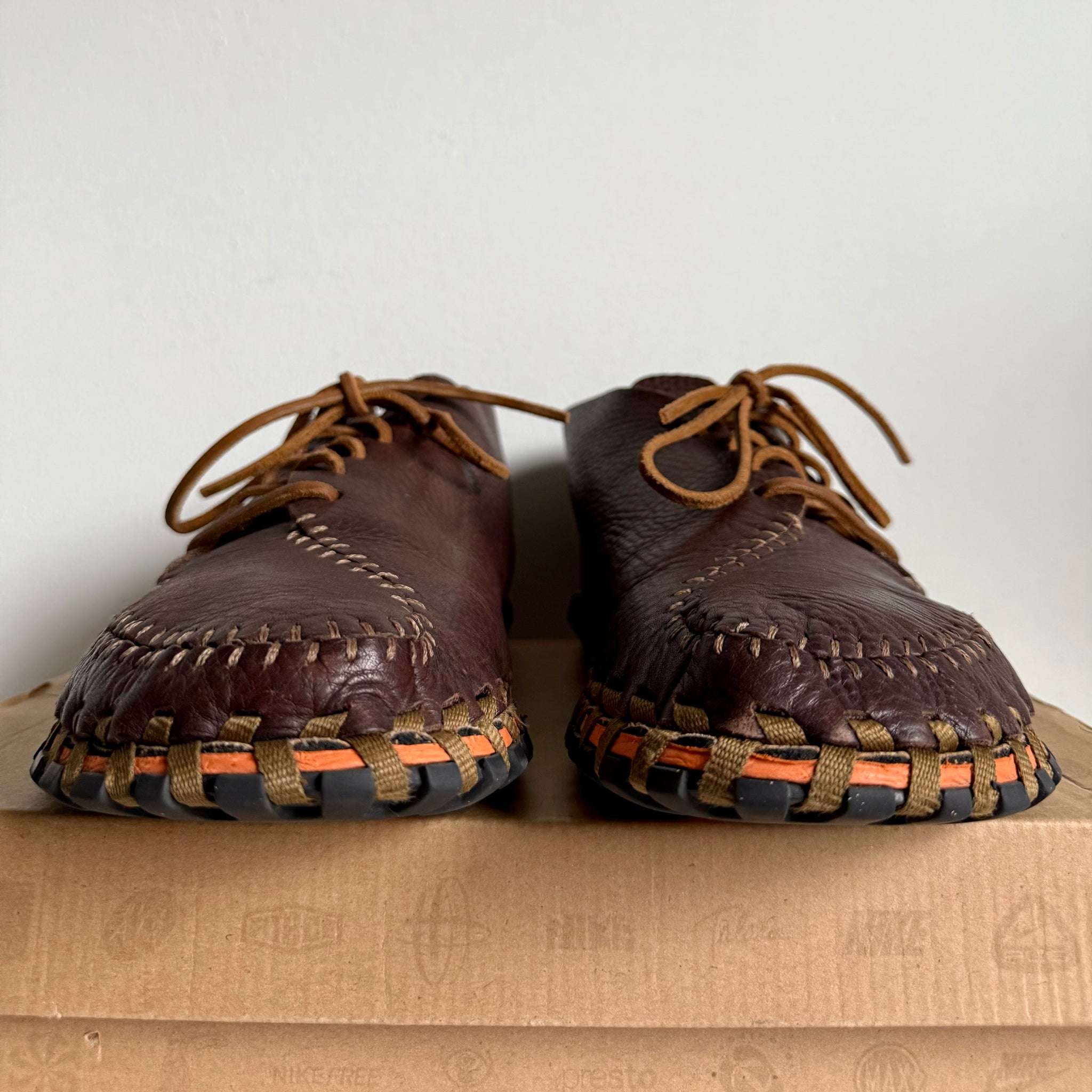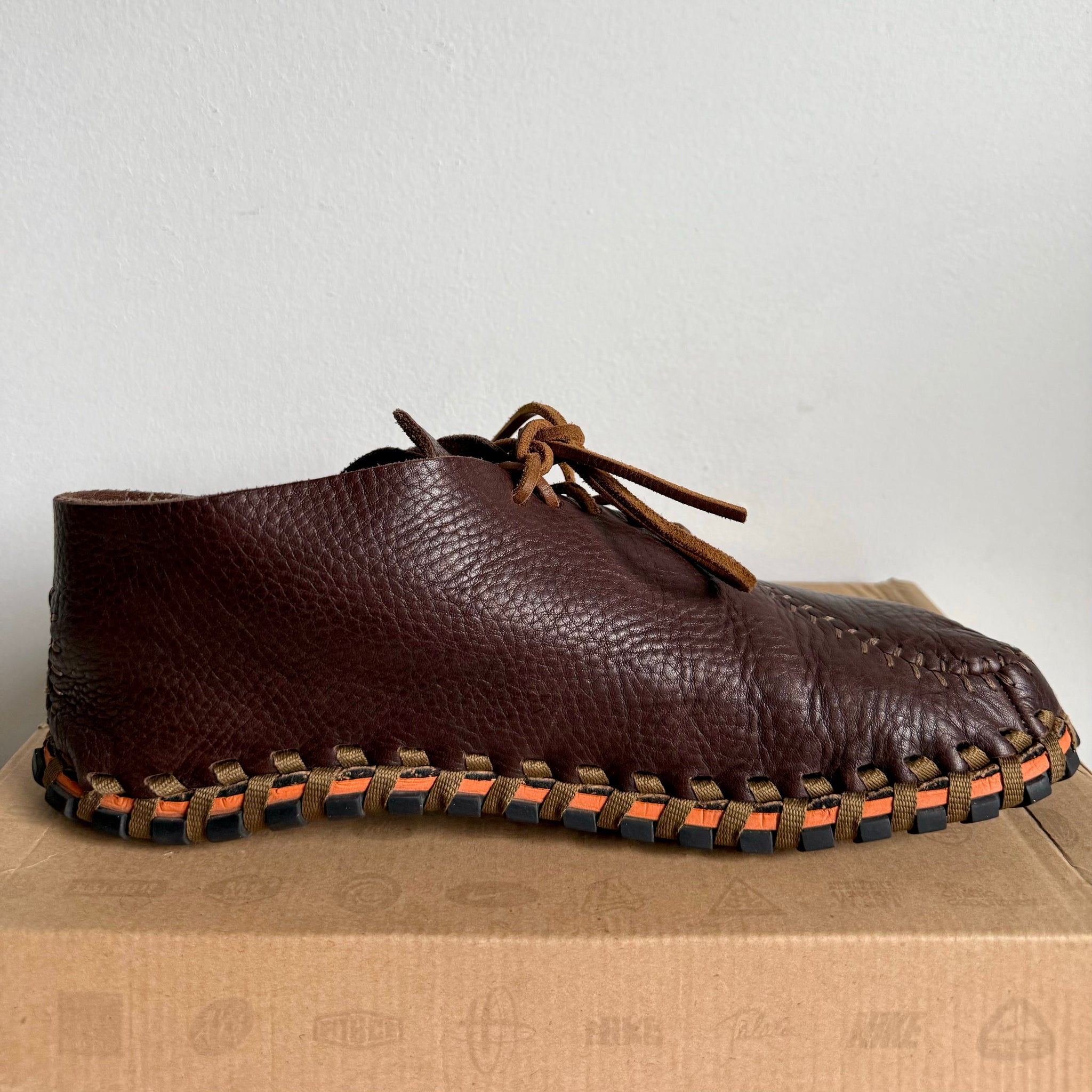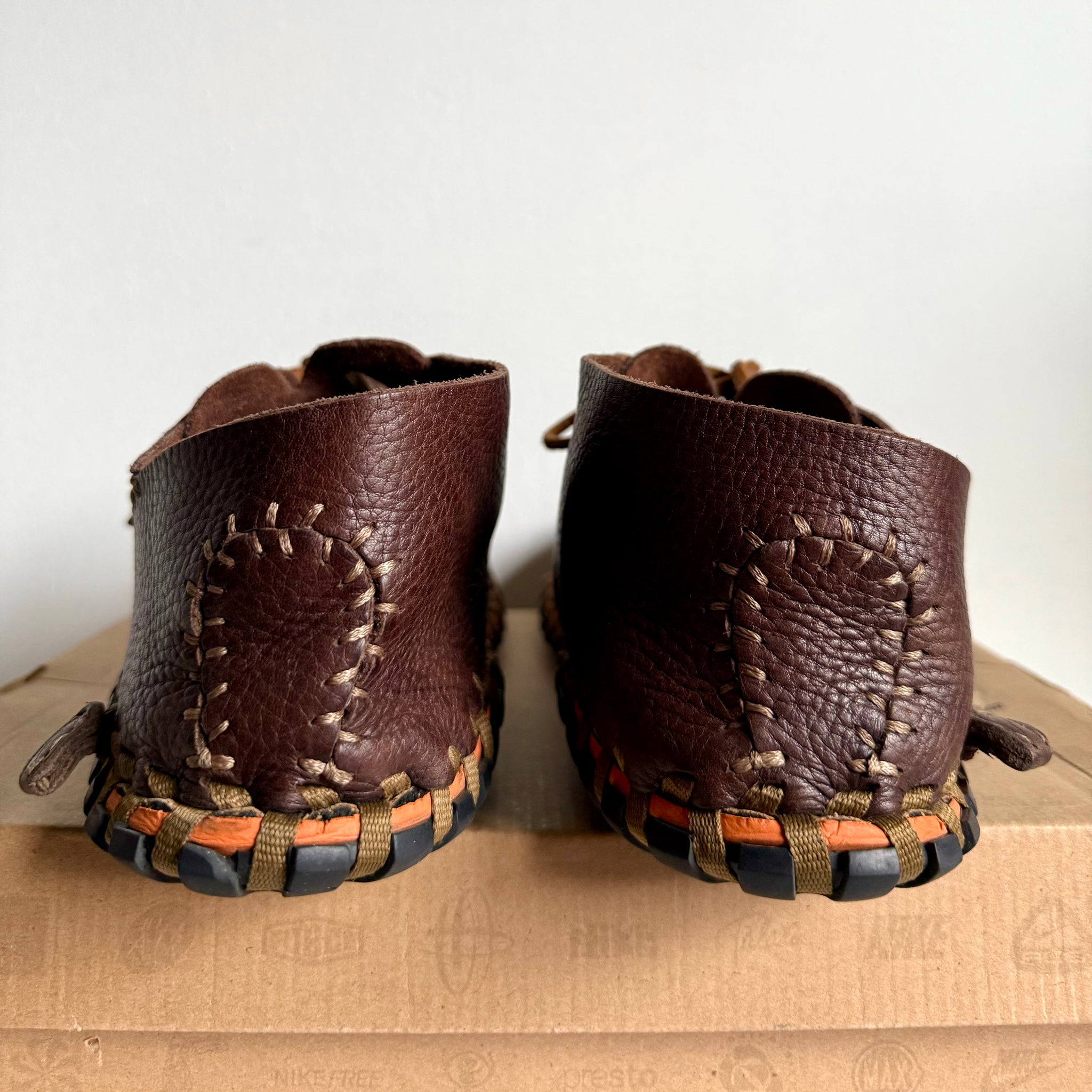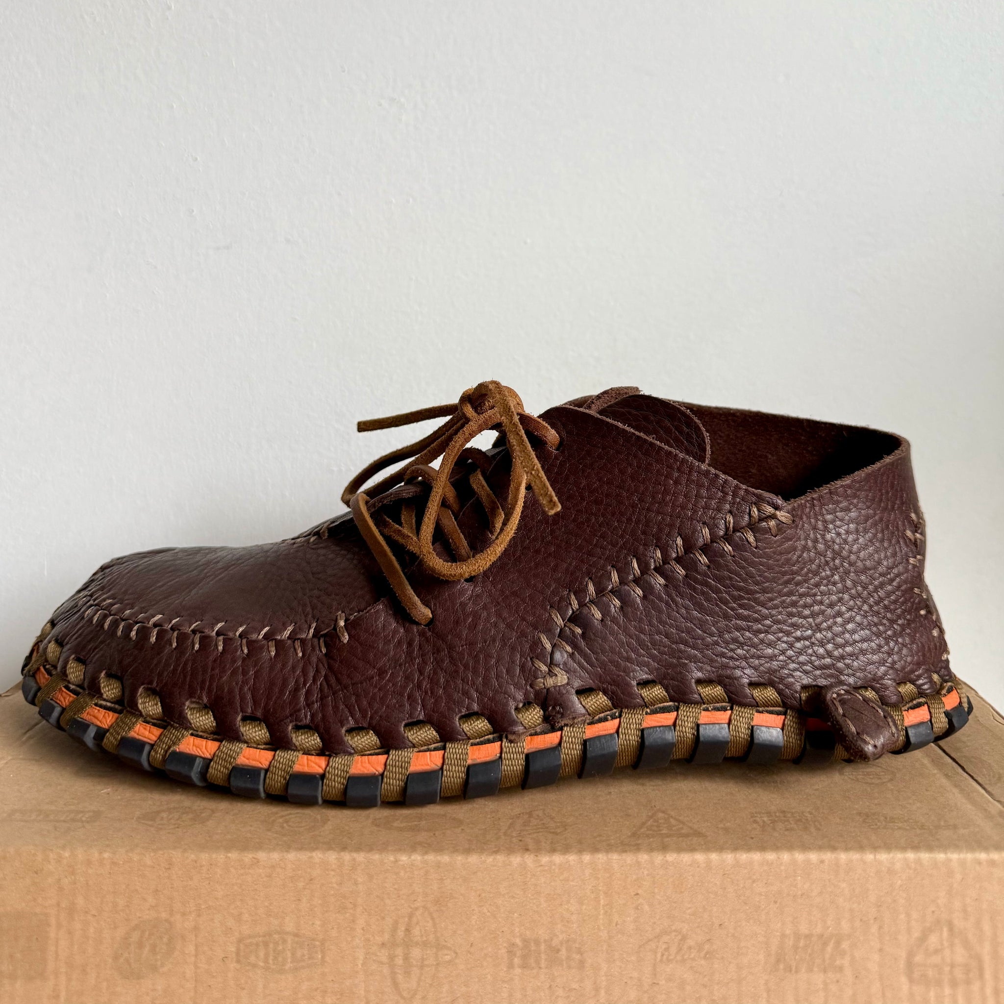 The Nike ACG Considered Longball Lace debuted as one of the most experimental and distinctive shoes Nike produced during its sustainability-focused era. Its unique seam pattern, inspired by a deconstructed baseball, not only gave the shoe its “Longball” name, but also became one of the most defining visual signatures within the ACG lineup. Built with a tumbled leather upper, exposed external stitching, and a cork footbed, it minimized the use of adhesives and created a natural, handcrafted aesthetic. The entire upper was sewn together with a single hemp shoelace and fastened directly to the sole—an approach influenced by the ancient Albanian Opanek construction method. Made without any glues or chemicals, the Longball Lace was completely biodegradable and fully sustainable, allowing 100% of its components to be recycled. The combination of moccasin-like construction and Footscape-style asymmetry made it both functional and visually unconventional.