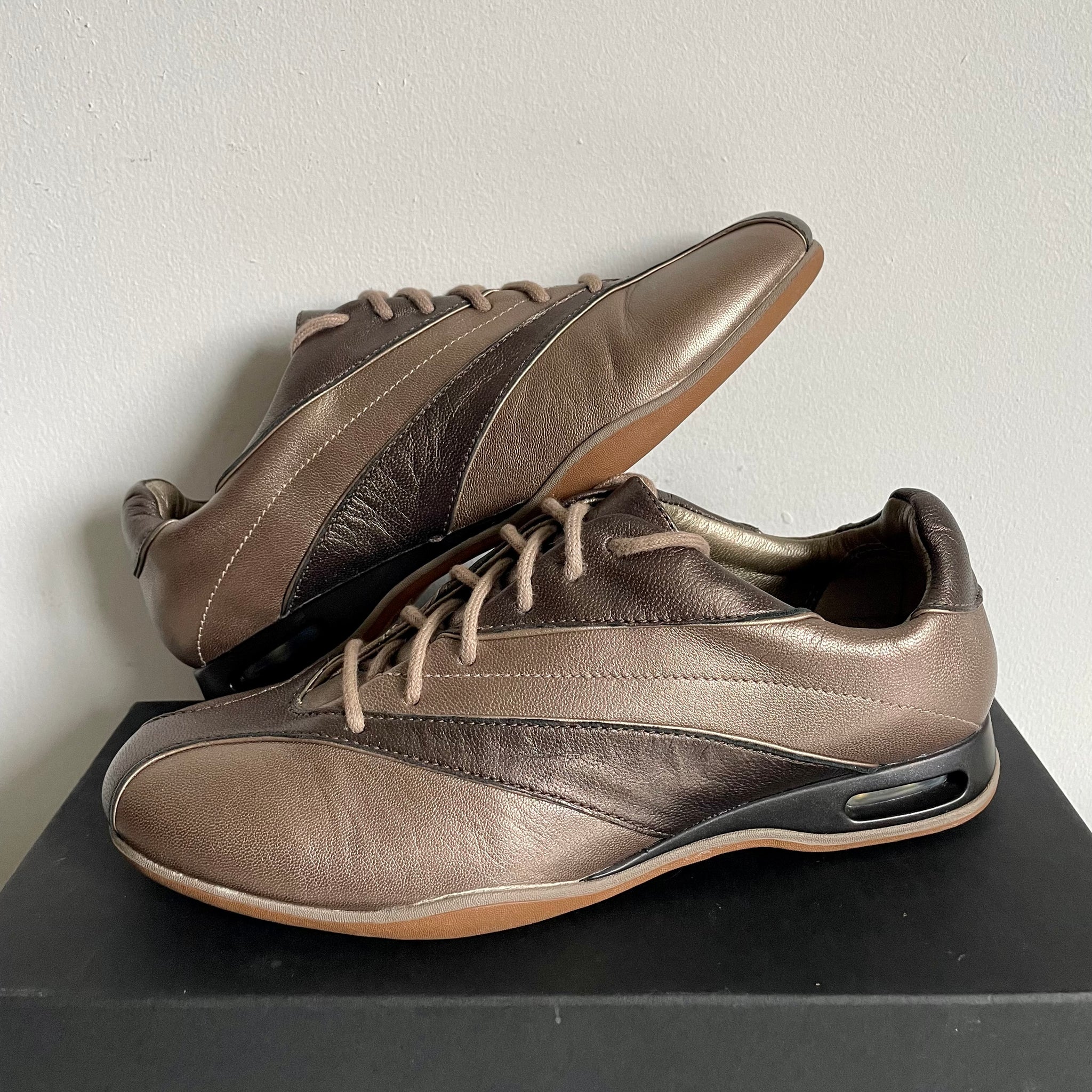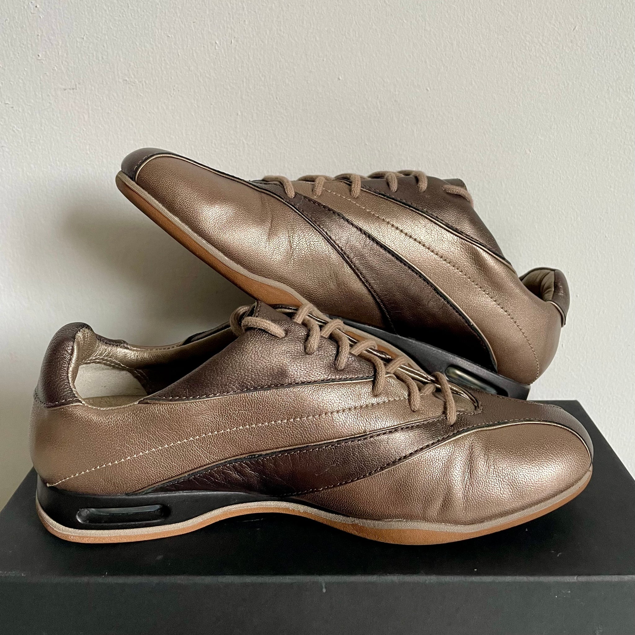 Condition: 8.5/10, some minor creasing. Air bubbles have plenty of life. As with all vintage footwear, these should be worn with caution. Soles are solid, but may require a little glue after some wear. Comes with replacement box.
