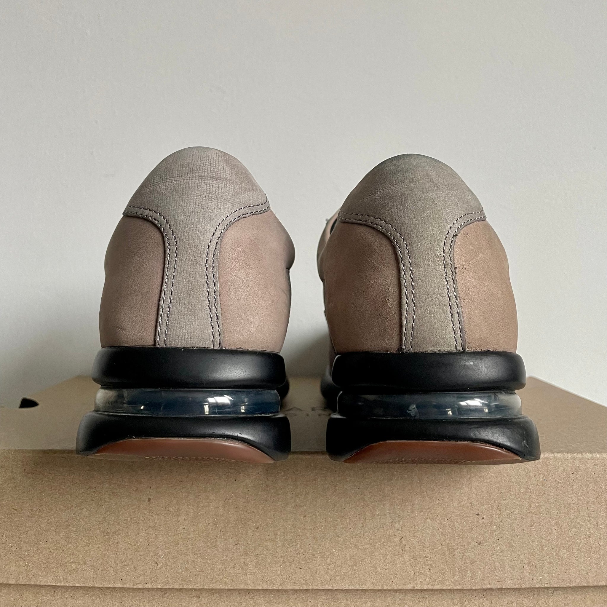 The model featured a classic visible heel Air unit, similar to those found on the Air Max 93 and 94. Most pairs were constructed with premium leather uppers, with variations ranging from ostrich or croc print to brushed, pebble, patent, and tumbled leathers. Its T-toe design subtly echoed the look of Prada’s iconic America’s Cup.